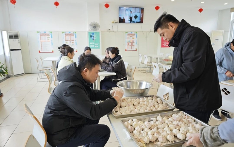 紧接着是制作腊八蒜环节,星级大厨亲授腊八蒜秘制技法,溯源千年习俗,细品岁月浓香。在这温馨氛围中,员工们以爱为料,将生活琐事化作欢声笑语,融入一瓣瓣蒜里。每一瓶精心腌制的腊八蒜,都是时光沉淀的馈赠。