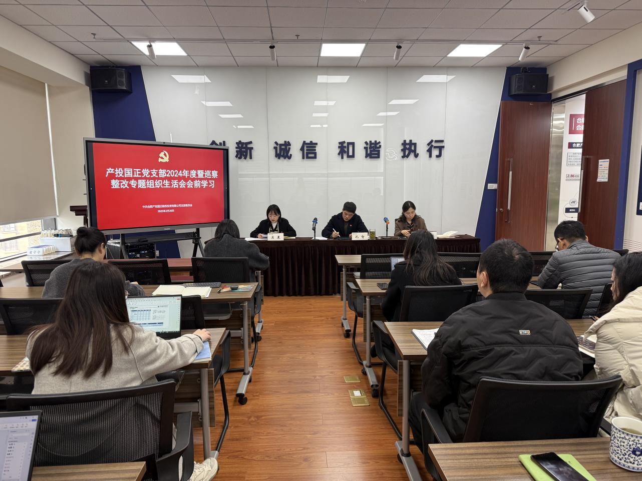 为高质量开好党支部2024年度暨巡察整改专题组织生活会,打牢思想基础,2月26日,产投国正党支部召开组织生活会会前学习会议,深入学习党的理论知识,全面加强党性修养,为组织生活会的顺利召开营造了良好的氛围。党支部书记、董事、总经理孔智主持会议,全体党员参加会议。