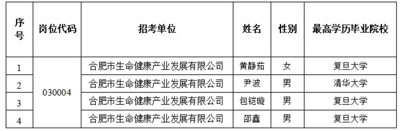 附件:合肥市产业投资控股(集团)有限公司2024年度秋季高层次人才引进拟录用(4人)