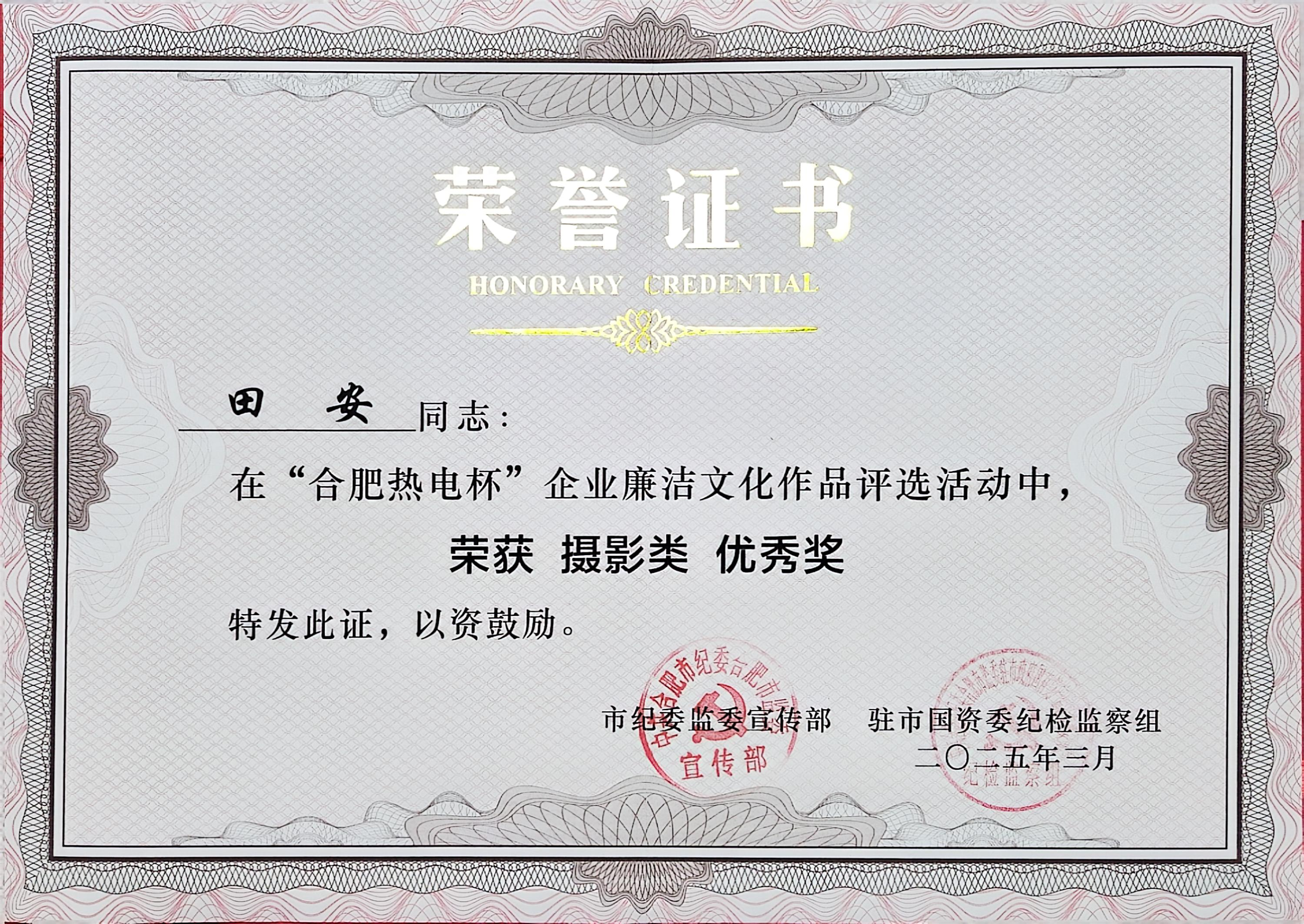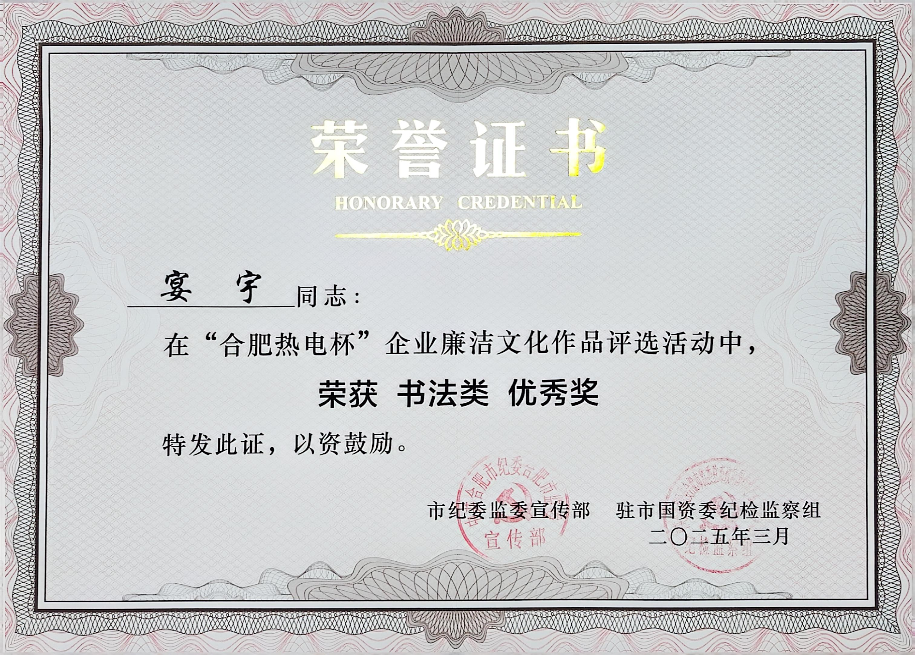 近日,“合肥热电杯”企业廉洁文化作品征集评选活动圆满落幕。公司报送的《以廉润心》《包拯警世格言》作品凭借深刻的思想内涵及精湛的艺术表现力,从众多参赛作品中脱颖而出,分获摄影、书法类优秀作品奖项。为企业的廉洁文化建设再添华彩。