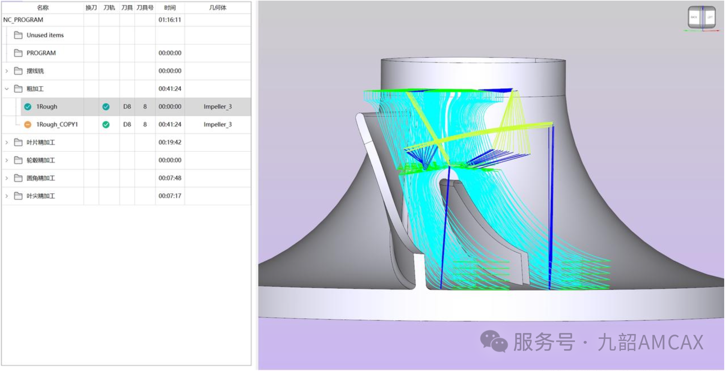 九韶正式推出PowerCAM v1.1.0支持叶轮加工工艺。合肥人工智能与大数据研究院孵化企业九韶智能成功交付基于九韶内核和POWER二次开发平台的内核衍生产品PowerCAM v1.1.0,新版本在支持叶盘加工工艺的基础上,新增支持叶轮加工工艺,包括叶轮粗加工、叶轮摆线铣、叶轮叶片精加工、叶轮轮毂精加工、叶轮圆角精加工和叶轮叶尖精加工等,主要用于开式叶轮类零件的加工。