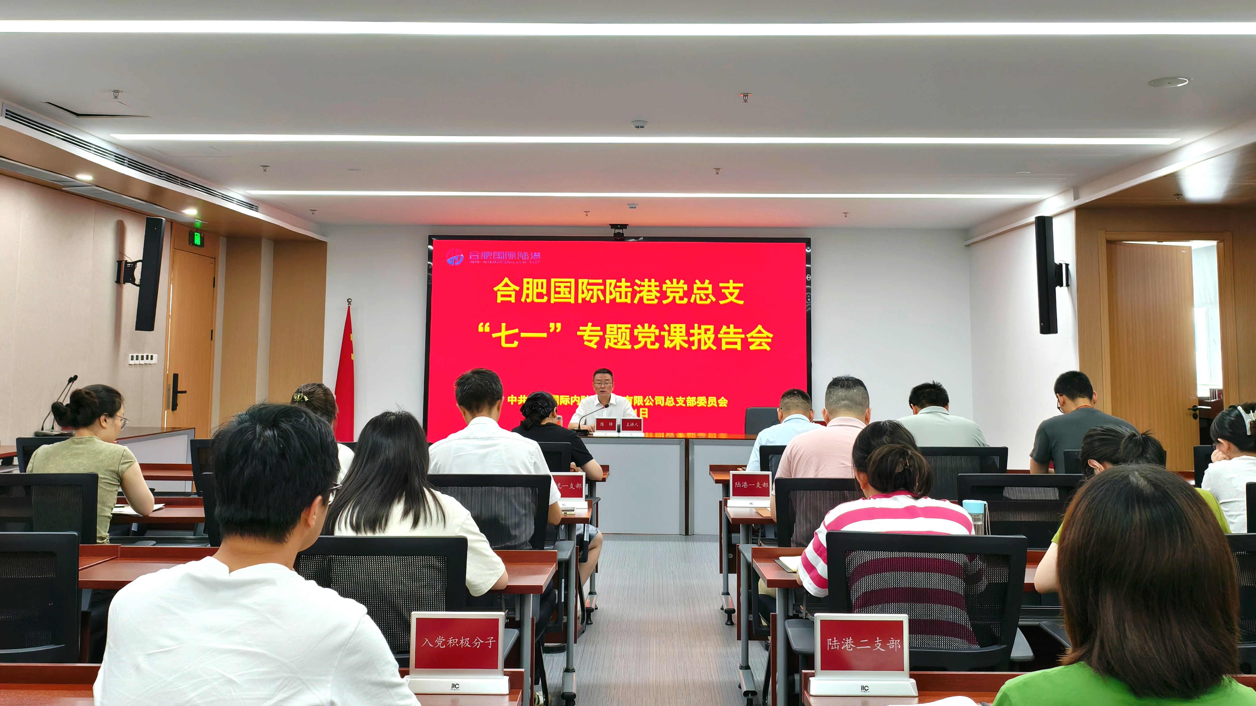 近日,为庆祝中国共产党成立104周年,深入贯彻中央八项规定精神学习教育,合肥物流集团旗下合肥国际陆港党总支召开“七一”专题党课报告会。合肥物流集团第一党支部全体党员,合肥国际陆港党总支班子成员、全体党员、入党积极分子、统战对象及员工代表参加会议。