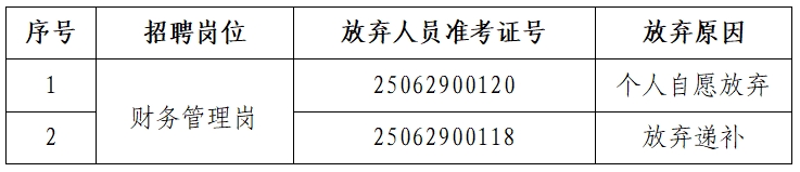 另根据《合肥市人才发展集团有限公司所属子公司2025年上半年社会招聘公告》的相关规定,因财务管理岗体检考察人员放弃,经研究决定取消该岗位的招聘。