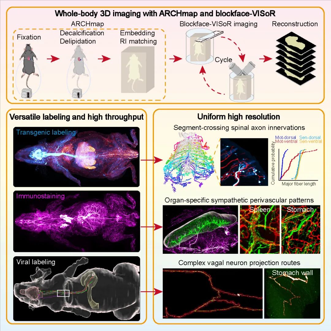 综合性国家科学中心人工智能研究院团队突破性实现小鼠全身神经系统亚细胞级高清成像,首创全球最快。近日,作为关键发起方和核心支撑平台,合肥综合性国家科学中心人工智能研究院在人工智能与介观神经图谱解析领域取得重大技术突破,相关成果发表于国际顶尖学术期刊《Cell》。此项研究由研究院“介观神经图谱解析”科研团队项目支持,成功研发出世界最快的小动物全身亚细胞级高清三维成像技术,标志着研究院在此前沿交叉领域已达到国际领先地位。