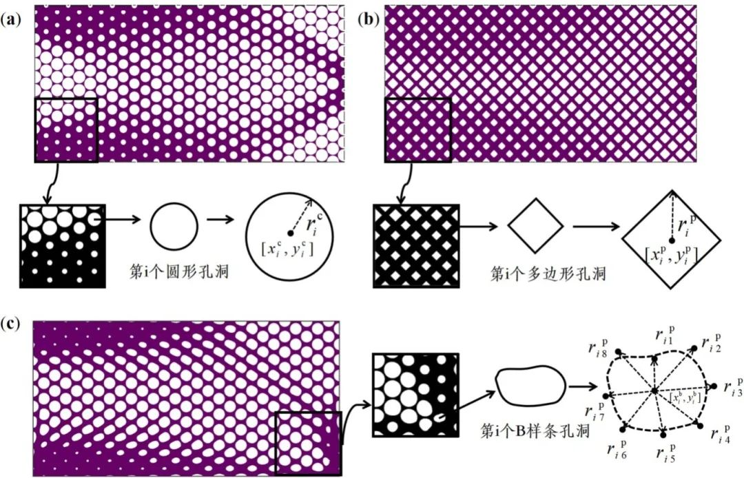图4 多孔结构(a)圆形孔洞(b)多边形孔洞(c)B样条孔洞