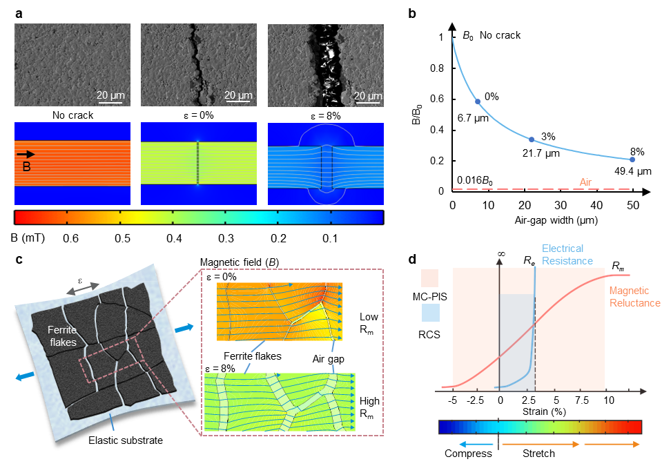 中国科大团队提出基于裂纹磁阻调制的柔性电感式传感新机理,颠覆机器人触觉。近日,中国科学技术大学工程科学学院、人形机器人研究院王洪波研究员课题组联合韩国浦项科技大学材料科学与工程系Unyong Jeong教授团队和中国科学技术大学张世武教授、冯志华教授,提出了一种基于磁性薄膜贯穿裂纹的新一代电感式双向曲率柔性传感器,其能够检测0.01°的微小弯曲变形,并在汽车多次碾压和破损等情况下保持性能不变,为真实世界中的机器人精准感知开辟了新路径,相关成果发表在国际期刊《自然·通讯》上。