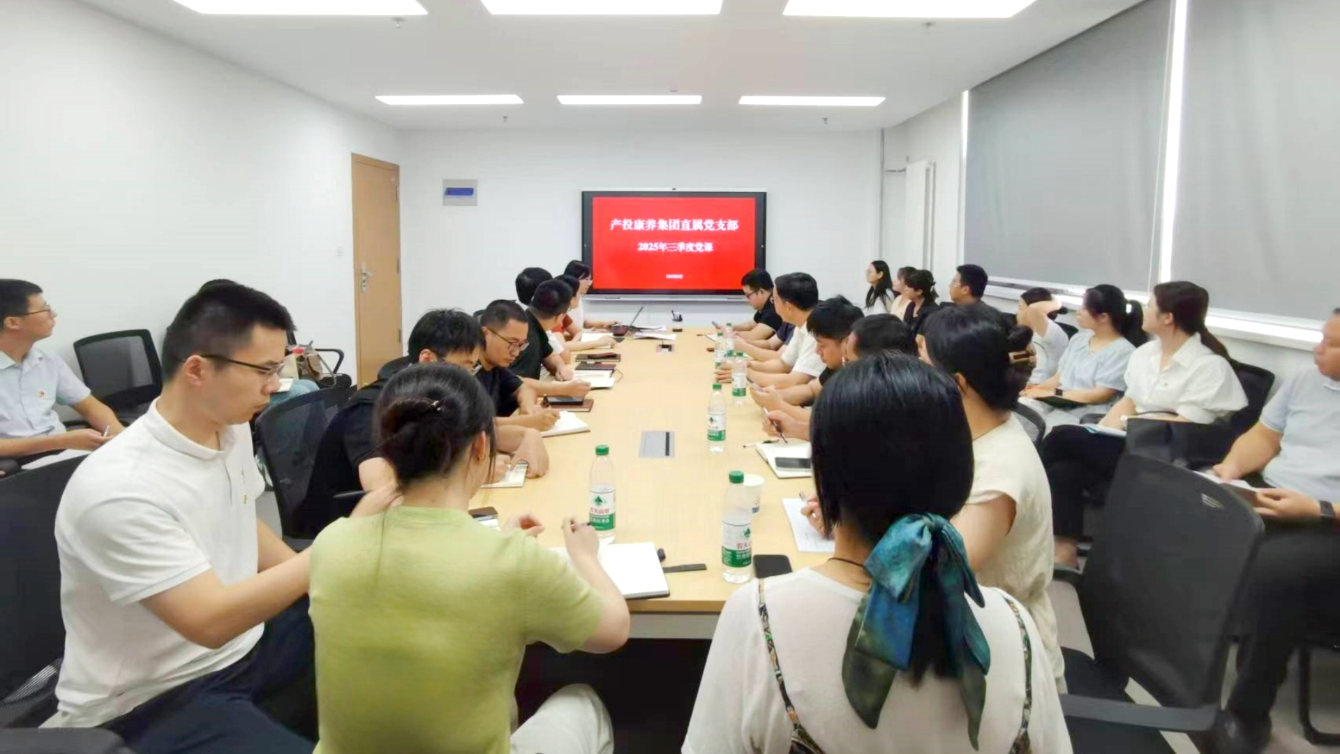 为铭记抗战伟大历史,汲取抗战精神力量,9月3日,康养集团直属党支部开展2025年三季度党课。康养集团领导班子成员、支部全体党员、入党积极分子参加学习。