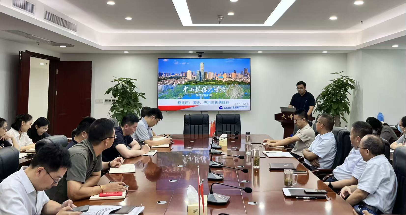 担保业务三部副部长孔祥生以《稳定币:演进、应用与机遇挑战》为主题,系统介绍了稳定币的诞生背景、发展历程、应用场景及其对担保行业的影响。他以《天才法案》为切入口,深入分析了当前稳定币的市场现状,结合区块链技术和在RWA(现实世界资产)领域的应用,列举了大量数字加密货币的实际应用场景,并关联公司当前担保业务开展情况,进一步剖析了未来担保行业在数字加密货币领域的业务机会与发展方向。此次分享不仅拓宽了员工视野,更为公司数字化转型提供了宝贵建议。