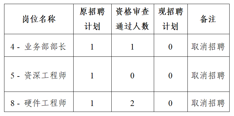 根据《合肥市医疗器械检验检测中心有限公司2025年下半年社会招聘公告》规定,结合实际报名及资格审查情况,经研究决定取消部分岗位招聘计划数,具体如下: