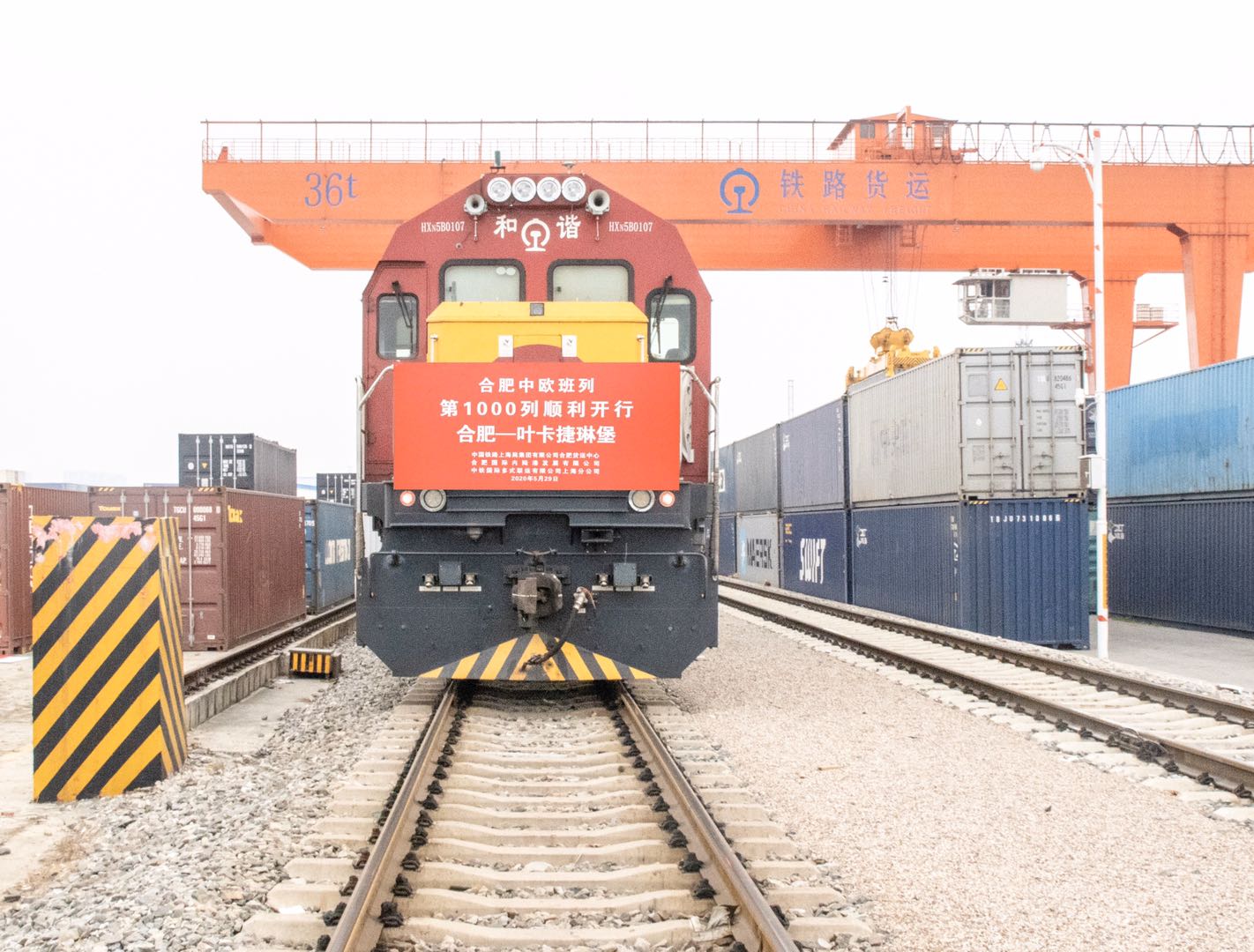 5月29日上午,一列满载100 TEU的中欧班列从合肥货运中心合肥北站物流基地出发,货值141.19万美元,货重23.91万吨,这是合肥中欧班列六年来累计开行的第1000列。这趟列车满载着“安徽制造”的奇瑞汽车,将经过二连浩特口岸发运至俄罗斯叶卡捷琳堡。