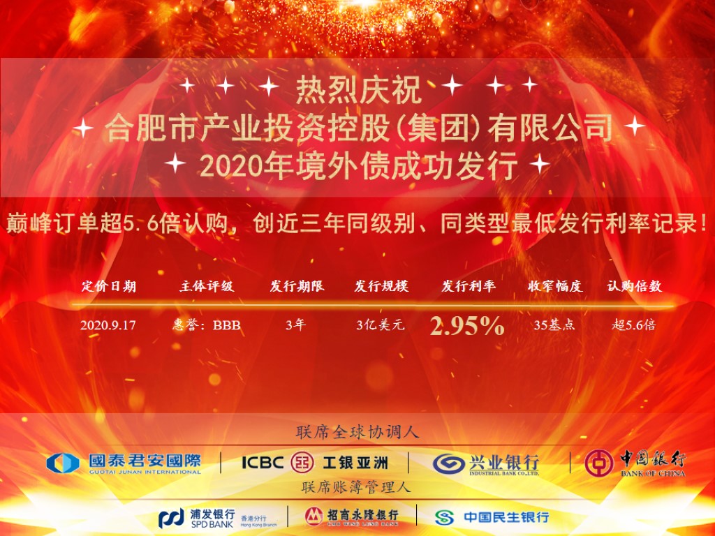 合肥市作为国务院批复确定的中国长三角城市群副中心城市,是综合性国家科学中心、“一带一路”和长江经济带战略双节点城市及G60科创走廊中心城市。kaiyun开云官方为合肥市三大平台公司之一,集团定位于产业投融资和创新推进的重要国有资本运营公司。本次美元债的成功发行,巩固了公司多元化的融资渠道、进一步彰显了公司良好的国际信用,显著提升了公司在国际资本市场上的形象,为合肥加快打造具有国际影响力的创新之都,不断谱写社会主义现代化建设合肥新篇章,为建设现代化五大发展美好安徽作出新的更大贡献。