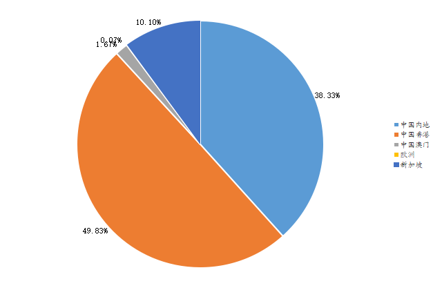 具体认购分布情况如图所示。其中,地域分布:中国香港49.83%,中国境内38.33%,中国澳门1.67%,新加坡10.10%,欧洲0.07%;投资者类型分布:银行/金融机构83.33%,基金/资管16.17%,券商/私人银行/对冲基金0.50%。