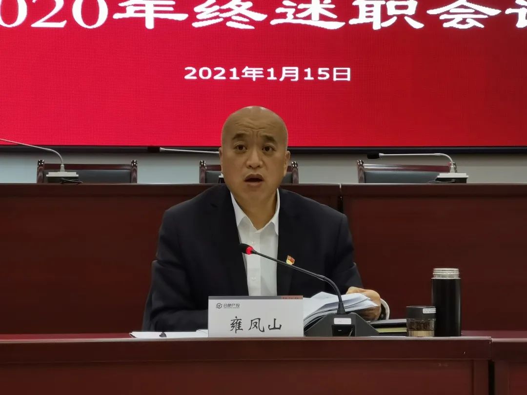 集团公司党委书记、董事长雍凤山在总结讲话中肯定了各部门过去一年的成绩,就2021年度工作开展,他要求,要强化责任担当,恪尽职守,将岗位职责落到实处;要积极谋划发展,抢抓机遇,为重大项目打牢基础;要加强队伍建设,博采众长,为人才发展提供舞台。新的一年,站在历史新起点上,要持续打造专业化、市场化、价值化产业赋能型投资平台,为区域产业发展作出新的更大贡献。