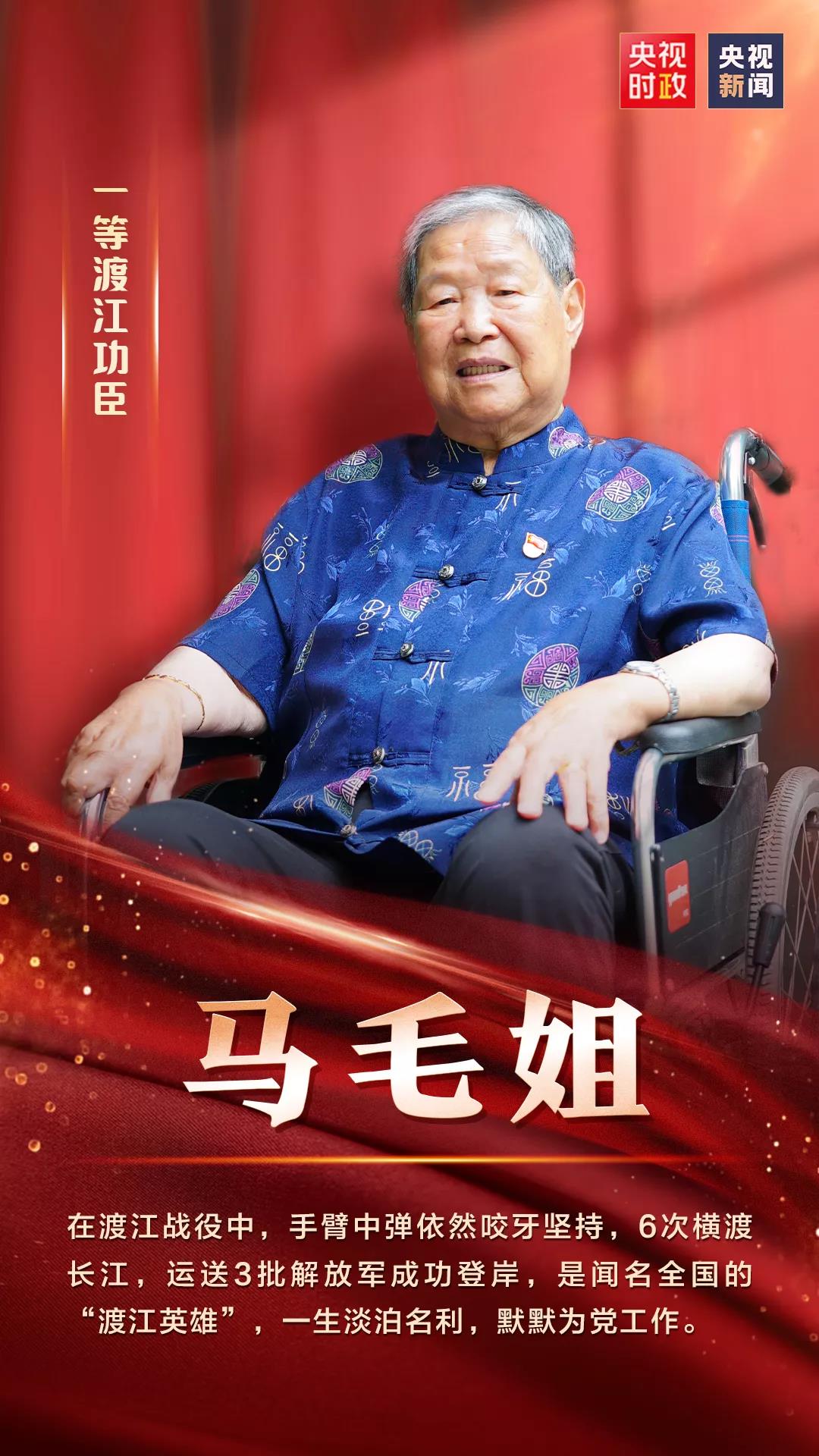 首位登上授勋仪台的是安徽籍“渡江英雄”马毛姐。
