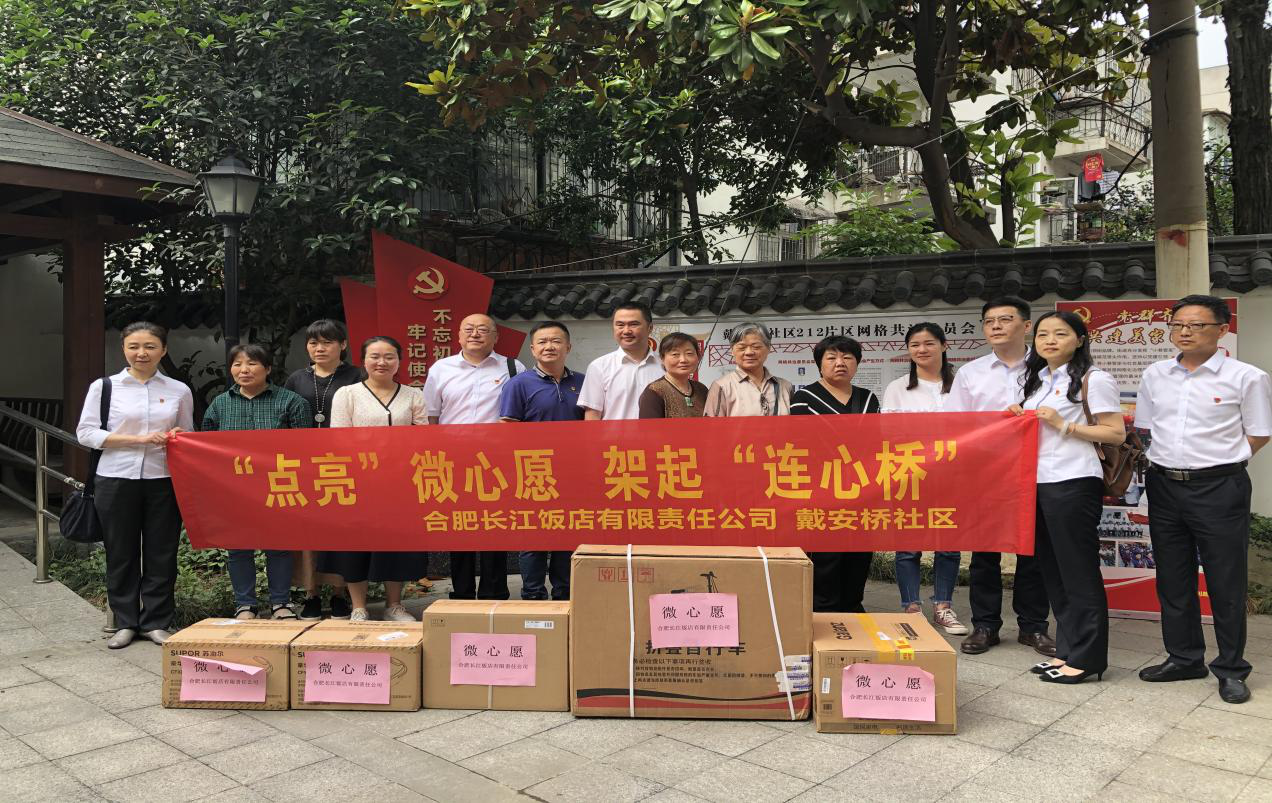 为贯彻落实党的十九大精神,积极探索党建引领下的多元治理新机制,遵循资源共享、优势互补,形成合力共建结对的要求,以项目为依托,搭建党建联建桥梁,5月28日,长江饭店党支部在党支部书记沈群带领下,应邀参加戴安桥社区结对共建协议签订仪式和开展“点亮微心愿”活动。