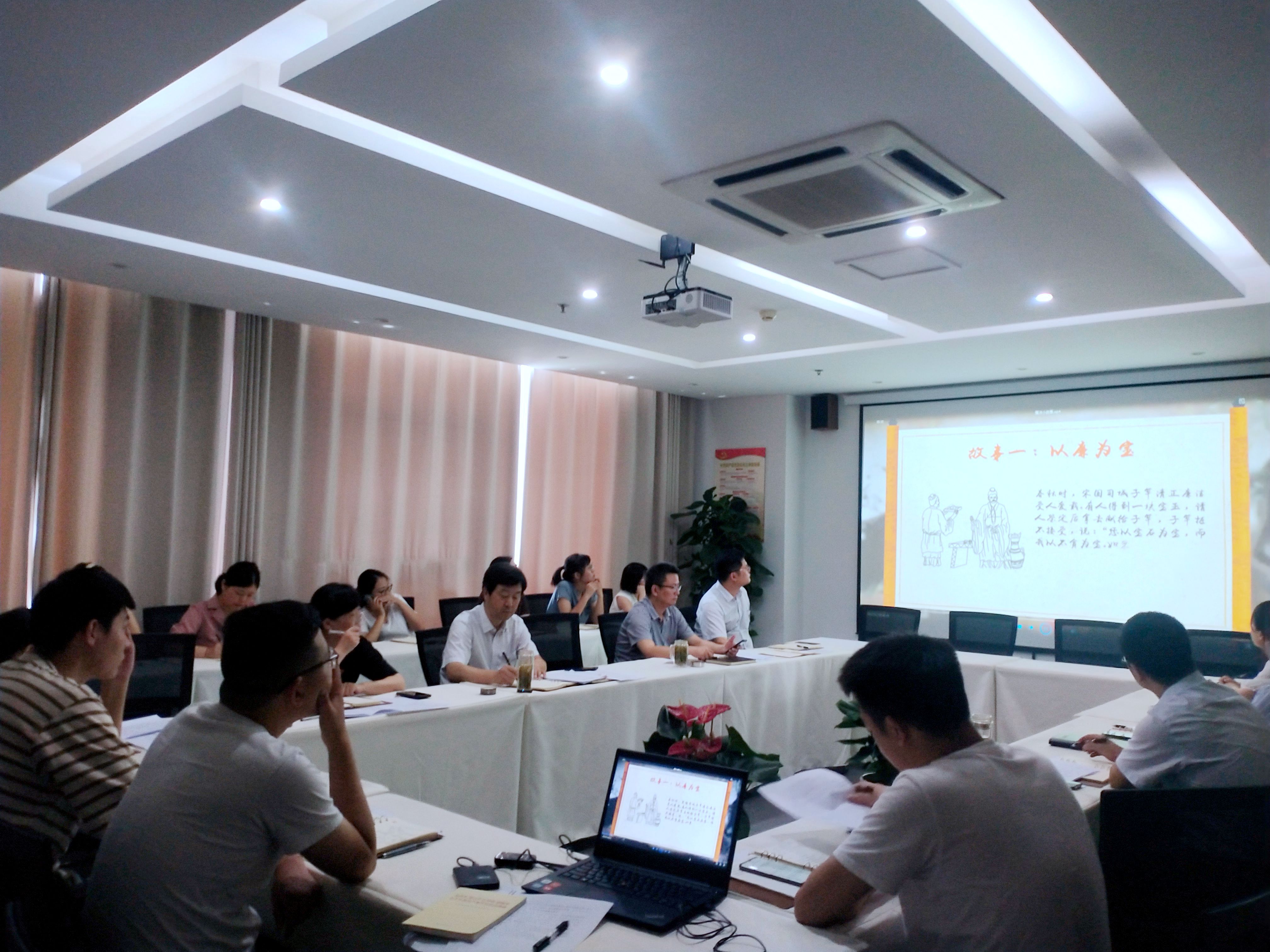 会议集中观看了《廉洁小故事 以史为鉴》廉政警示微视频,视频讲述了《以廉为宝》《杨震拒金》《一钱太守》《悬鹅示众》《一贫如洗》《两袖清风》《不私一钱》《陶母退鱼》《不惧贪泉》《棒打送礼》十个古代廉洁小故事,阐述了为官当以廉为先的道理。教育广大党员尤其是党员领导干部,面对现实社会的考验和诱惑,要牢固树立廉洁意识,始终把保持廉洁自律作为最基本的行为准则,做到两袖清风,清正廉洁;始终树立正确的世界观、人生观、价值观,牢记党的宗旨,自重、自省、自律,常怀律己之心,常思贪欲之害,始终保持共产党人的浩然正气。