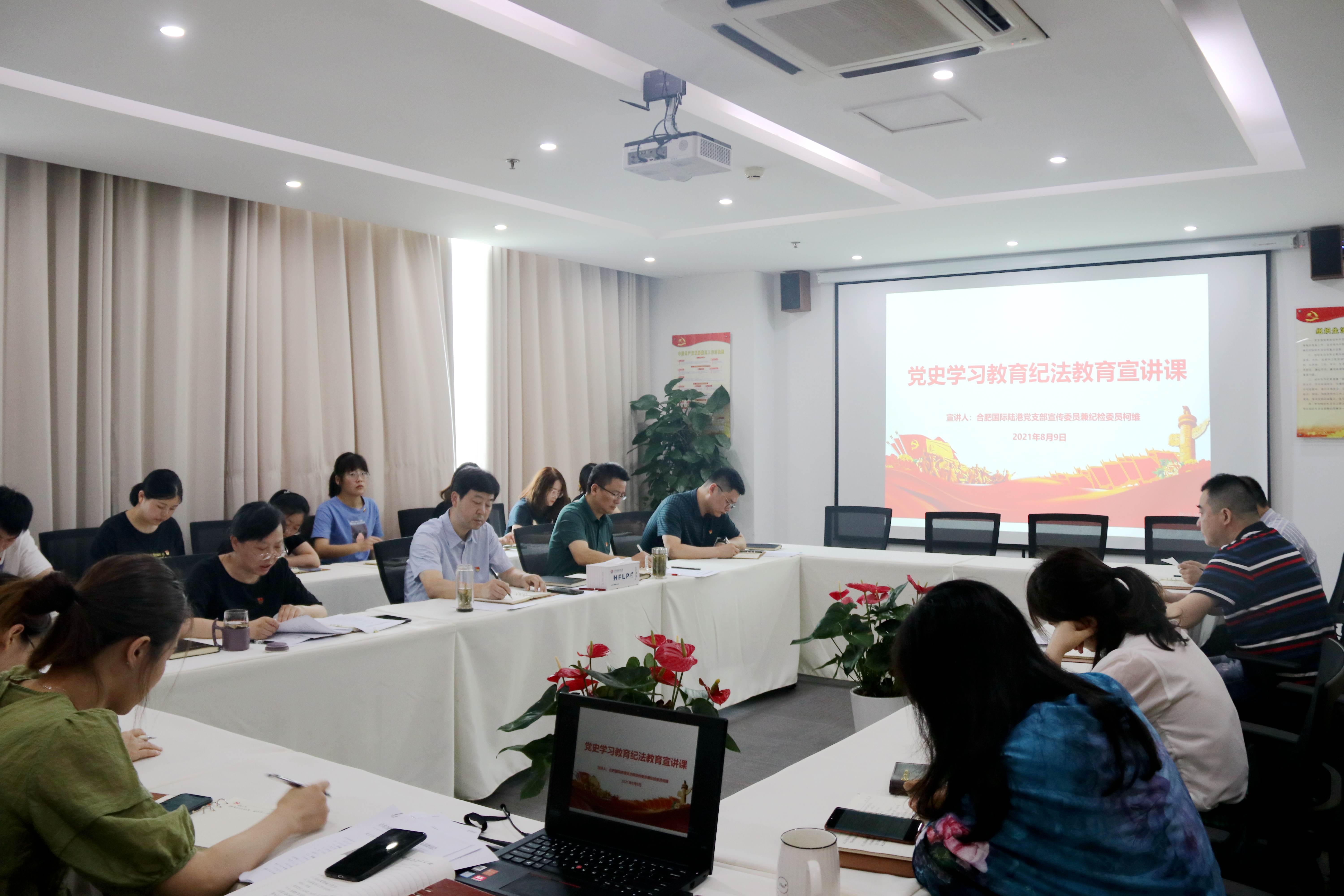 为深化党史学习教育,继续发扬党的优良传统,进一步增强党员干部法纪意识,8月9日上午,合肥国际陆港召开党史学习教育纪法教育宣讲大会。党支部宣传委员兼纪检委员柯维作宣讲报告,党支部书记刘军主持会议。公司全体党员、积极分子参加会议。