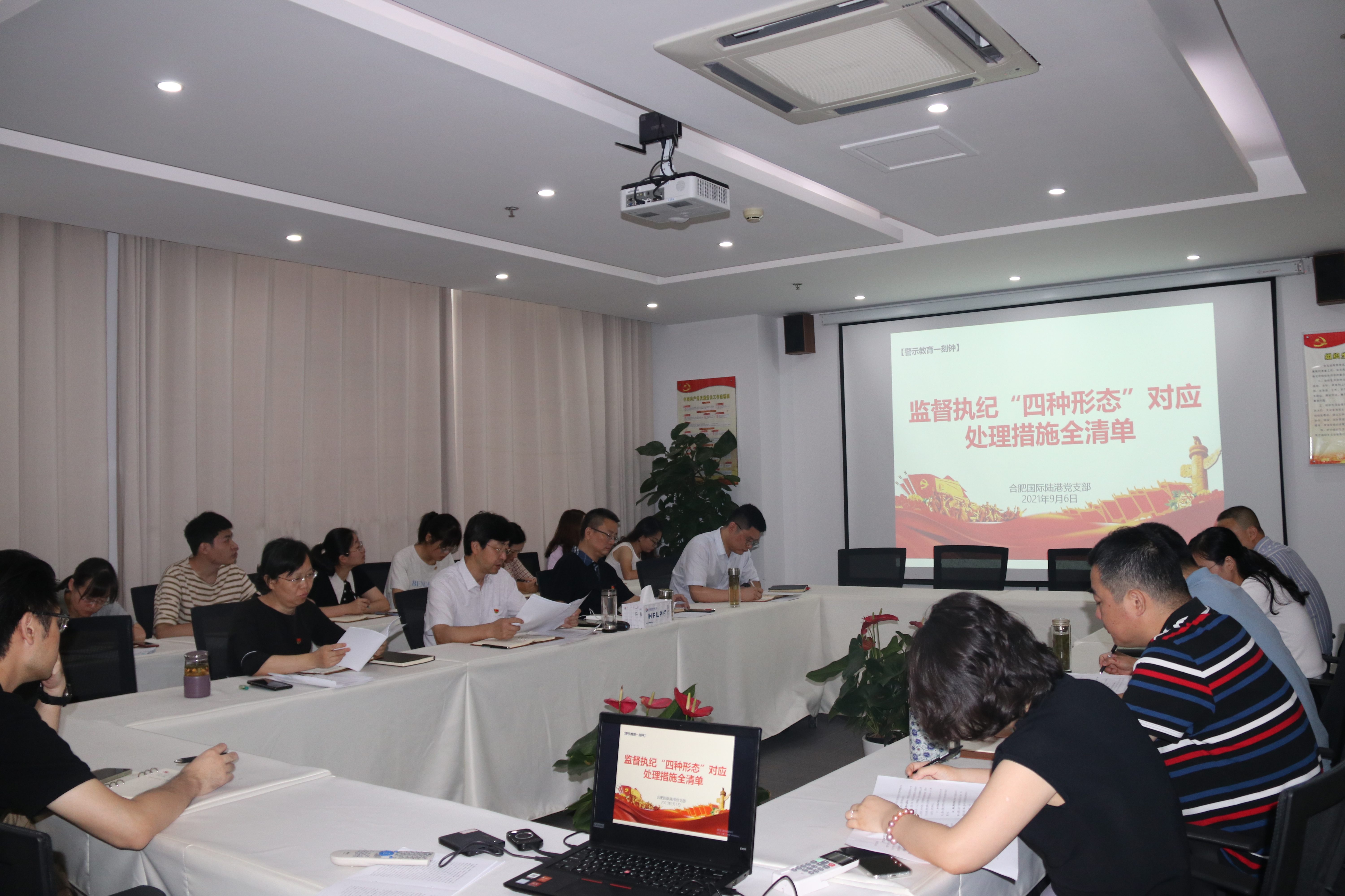 为进一步强化正风肃纪,9月6日上午,合肥国际陆港党支部开展“警示教育一刻钟”活动,党支部书记、董事、总经理刘军带领全体党员、入党积极分子学习监督执纪“四种形态”以及对应处理措施全清单。